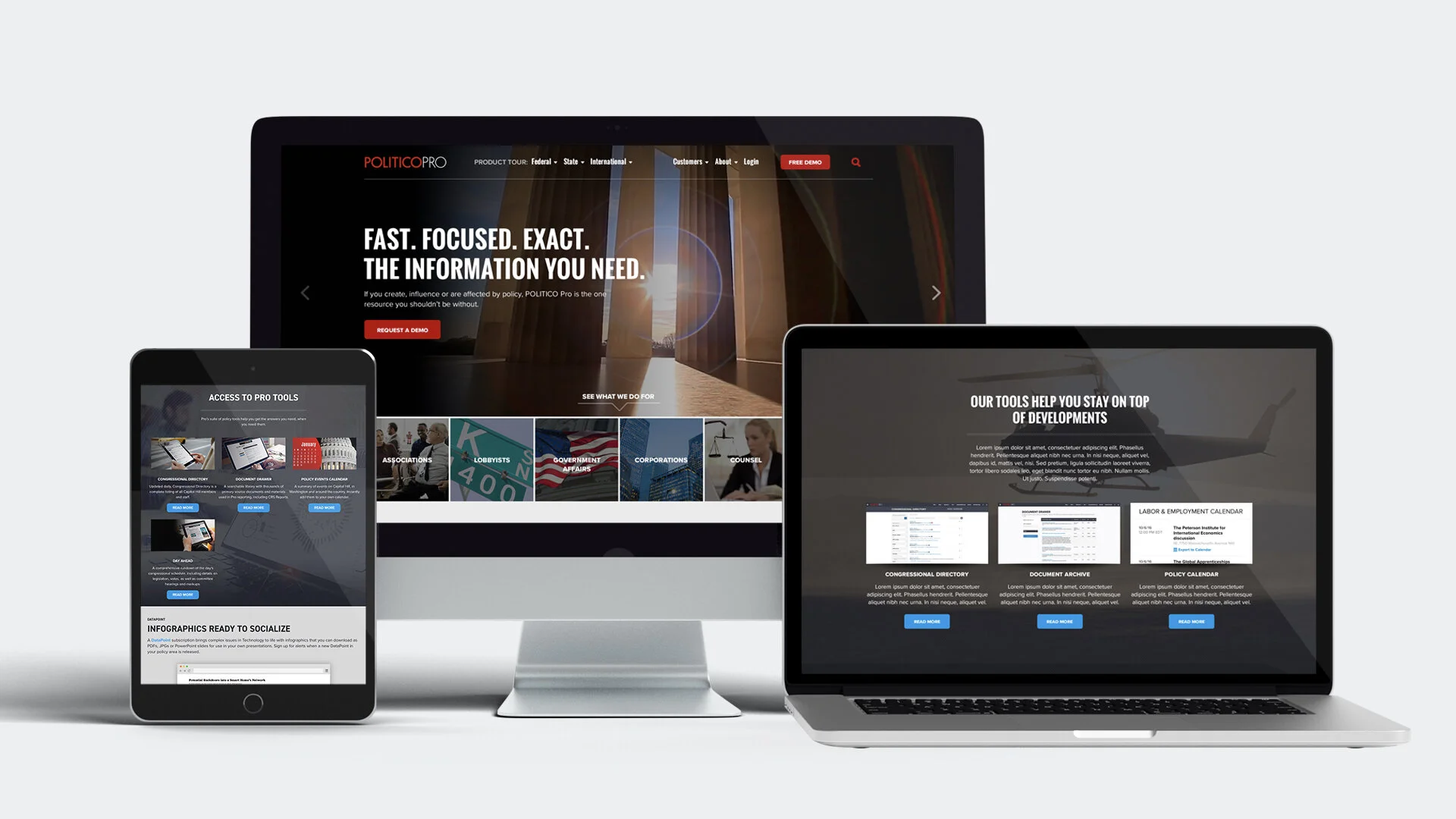 We then built out the POLITICO Pro website with focused messaging based on a hierarchy of needs and images that both reflected the policy areas covered and demonstrated the ways that information is delivered.