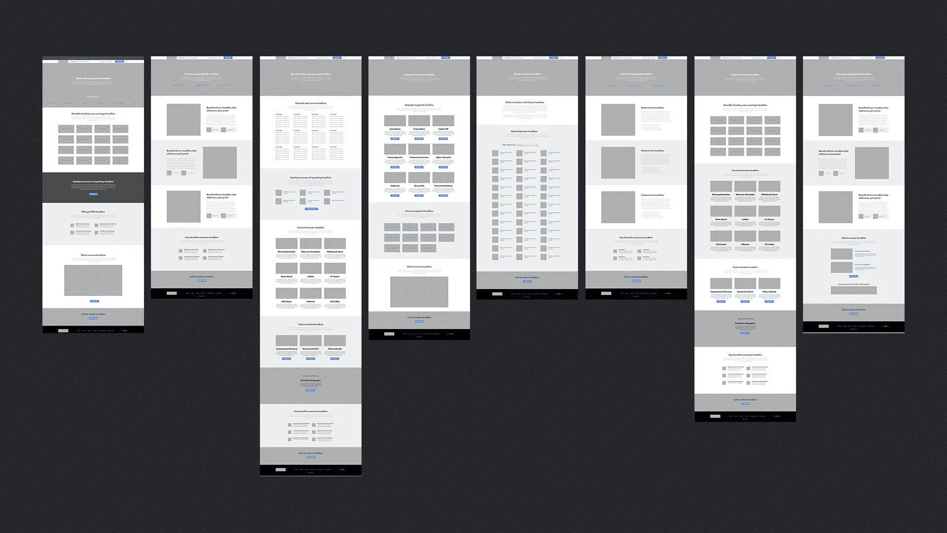 Creating this welcoming and credible introduction to a truly powerful tool meant having a firm grasp of how all this information would ladder up to that first interaction. Our wireframes not only presented visual variety, they were created to provide different experiences depending on the type of features served up as specific benefits for each target.